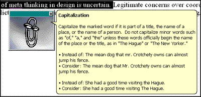 - Tänk att byråkrater alltid ska vara så stelbenta. Så låter det ganska ofta. Efter ett kort sammanträffande med en människa har vi bildat oss en tämligen vittgående uppfattning om hans karaktär och egenskaper. Vi kan uttrycka den på mer eller mindre lustiga vis, och ibland präglar den vårt fortsatta umgänge med personen i fråga under ganska lång tid (ända tills vi "lär känna" honom, som man brukar säga). Det är inget konstigt med att vi använder oss av stereotyper. Genom att snabbt kategorisera människor, föremål och situationer kan vi hushålla med våra mentala resurser och bättre klara av vardagslivets komplexitet. Om vi tolkar situationen för handen som något vi är vana vid, en stereotyp, så vet vi också av erfarenhet hur vi ska handla. Risken med att försöka ge datorprogram mänskliga drag är att vi stereotyperar dem som mänskliga karaktärer. Låt oss se på ett exempel: Kontorsassistenten i Microsoft Office 97. Det är ett program som ska hjälpa användaren med ordbehandling, kalkylering och annat som Office-paketet stödjer. Assistenten använder en personlig ton för tilltalet till användaren och är rätt så aktiv. Den påpekar olika slags fel och pockar ibland på uppmärksamhet för att tipsa om ett bättre sätt att göra en viss åtgärd. Man kan välja bland olika skepnader med olika språkbruk och "personligheter"; standard är ett animerat gem av amerikansk modell. Scenariot är att jag sitter och skriver en artikel på engelska med stavnings- och grammatikkontrollen påslagen. Det sammansatta ordet 'meta-thinking' markeras i texten och assistenten påpekar att det är ett sådant ord som man inte bör skriva med bindestreck. Påpekandet syns mig rätt och rimligt, så jag rättar i texten. Men när jag gör det så anmärker assistenten i stället att ordet 'meta' bör skrivas med stor bokstav om det är del av ett namn! En fullständigt irrelevant kommentar, förstås, och helt fel i det här sammanhanget. Alldeles nyss kände jag ett visst förtroende för att assistenten "förstod" den text jag höll på att skriva, men nu säger den något som är alldeles uppåt väggarna. Min mer eller mindre omedvetna föreställning om assistentens kompetens kollapsar blixtsnabbt. En mänsklig assistent som först ger en rimlig, kunnig kommentar och sedan ger en helt felaktig kommentar när jag följer rådet, skulle snabbt stereotyperas som illvillig och socialt inkompetent. Genom att anspela på mänskliga drag i utformningen av datorassistentens karaktär riskerar Microsoft samma slags bemötande. Om assistenten hade utformats med samma grad av kompetens men utan direkta anspelningar på mänskliga karaktärer är det troligt att jag skulle känt mig mindre sviken i situationen ovan. En uppenbar automat riskerar inte lika lätt att placeras i fack för mänskliga stereotypkaraktärer.